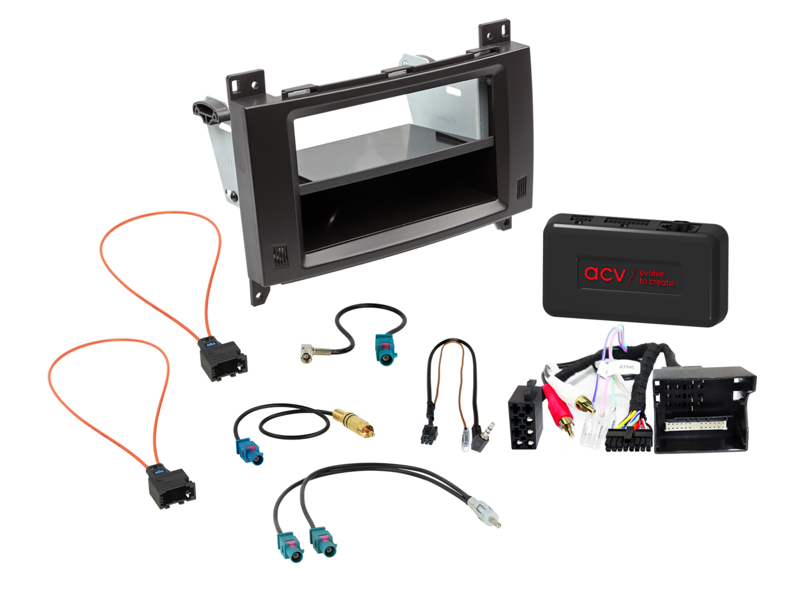 Afhankelijk van de uitrusting van het voertuig worden alle adapters en interfaces meegeleverd die nodig zijn om het retrofitapparaat te bedienen en de voertuigfuncties te herstellen.