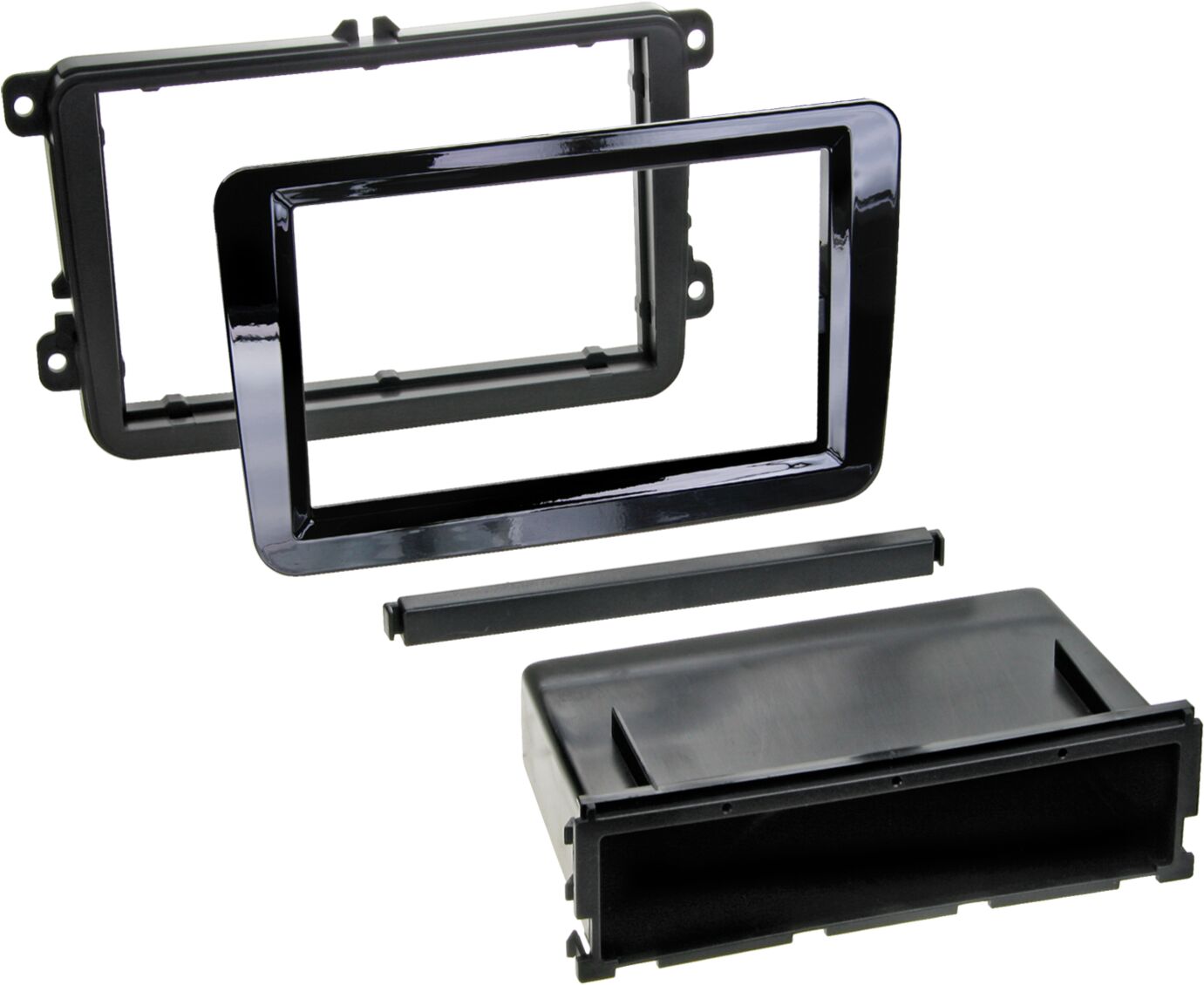 2-DIN Paneel met opbergvak Seat – Skoda – Volkswagen – Kleur: Piano Zwart