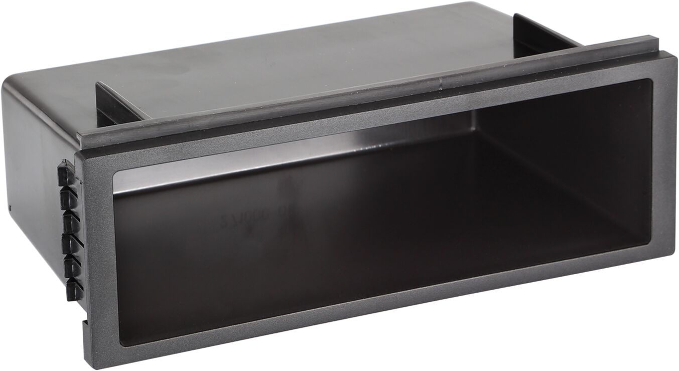 Opbergvak voor het ombouwen van een 2-DIN radio-installatiepaneel met 2-DIN metalen frame en radiopanelen met 2-DIN installatie-uitsparing naar 1-DIN apparaten.