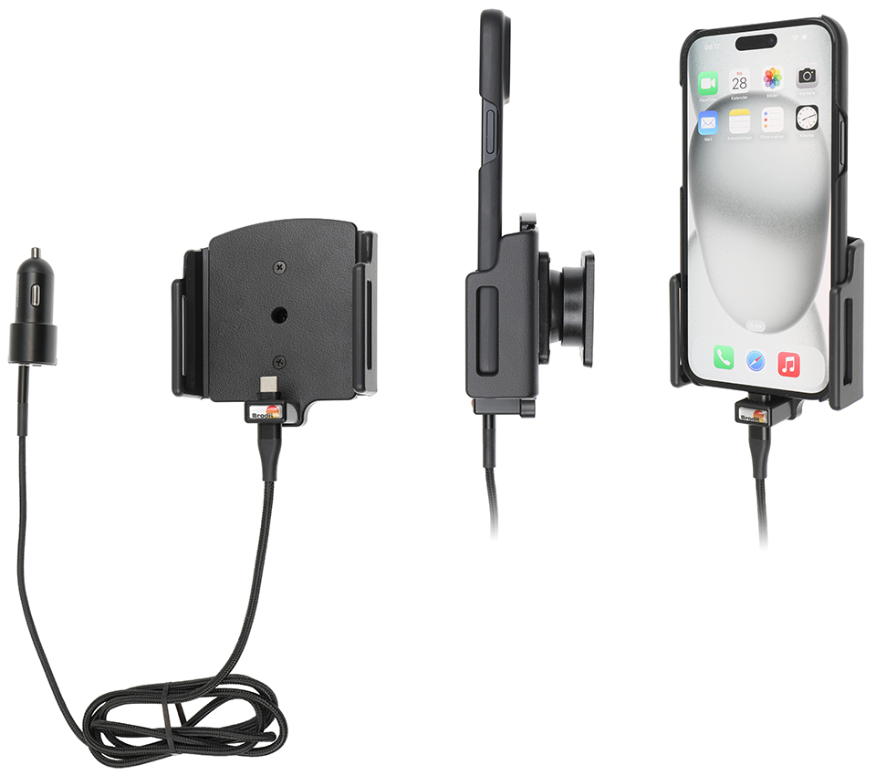 Apple iPhone 15 Plus / 15 Pro Max , Actieve verstelbare houder met 12V USB SIG-Plug 70-83mm