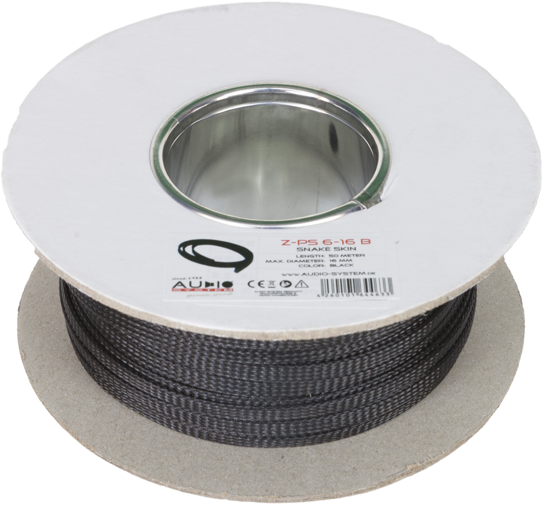 AUDIO SYSTEM Professionele gevlochten kous. Rol van 50 mtr. Diameter 6 tot 16 mm Zwart