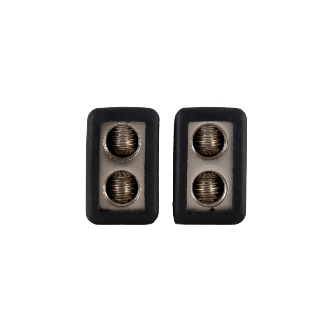 TB1082 is een set van twee dual-input adapters voor 10 mm² kabels, waarmee je twee 10 mm² draden kunt aansluiten op één enkele 10 mm² aansluiting. Ideaal voor versterkers met slechts één ingang of uitgang waar meer vermogen nodig is, of wanneer meerdere kabels parallel moeten worden aangesloten.