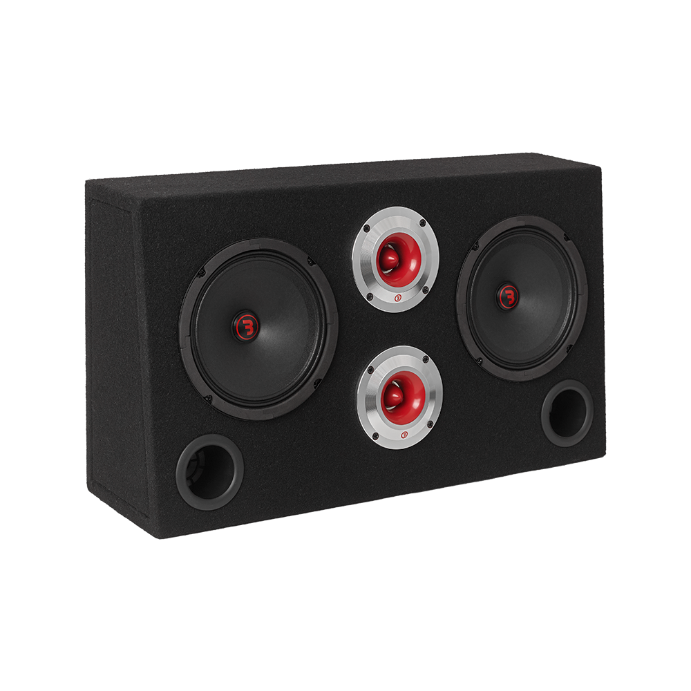 Een volledig gemonteerde, gebruiksklare SPL-behuizing met poortontwerp, dubbele 6,5-inch midbass-drivers en krachtige hoorn-tweeters. De SRE62 is gemaakt voor mensen die een grote ervaring willen in een compact formaat en levert de kenmerkende Bass Habit-punch – voor een prijs die het een no-brainer maakt.