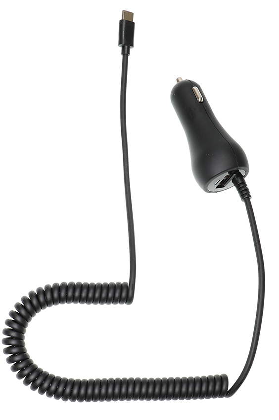 Oplaadkabel met sigarettenplug. Met USB Type-C-connector, 2A opladen. Met USB A-uitgang in de sigarettenplug, 1A opladen. 12 / 24V.