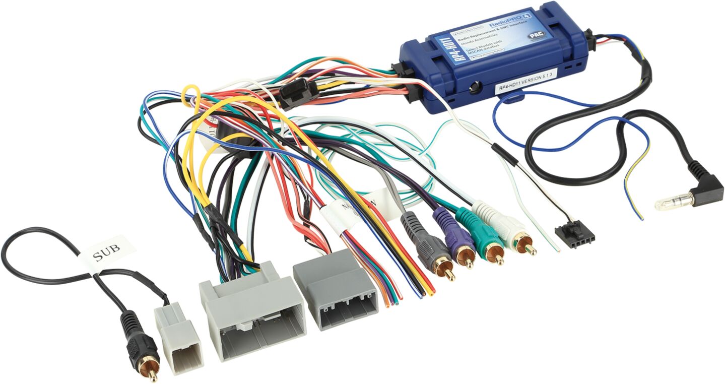Deze stuurwiel interface stuurt (indien beschikbaar) een ingebouwde versterker en een video-entertainmentsysteem via de CAN-bus.