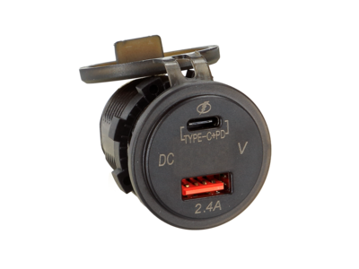 USB-oplader voor het opladen van smartphones, tablets of laptops in auto’s, vrachtwagens, stacaravans of caravans.