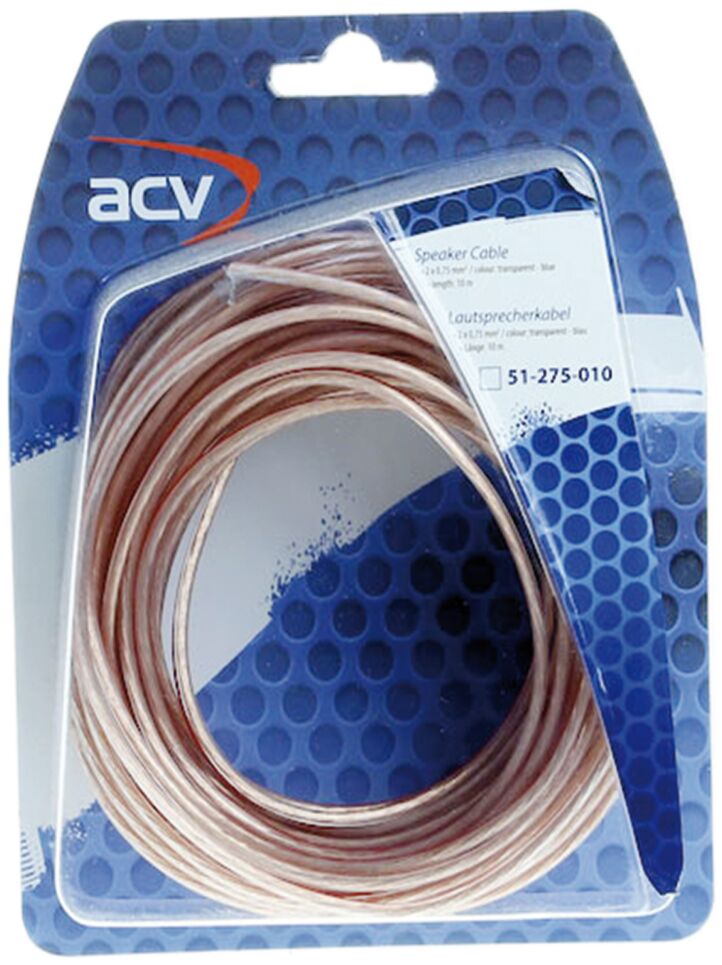 Luidspreker kabel Ø: 2 x 0,75 mm² Lengte: 10 Meter Kleur: transparant/blauwGeschikt voor:0,75 mm²