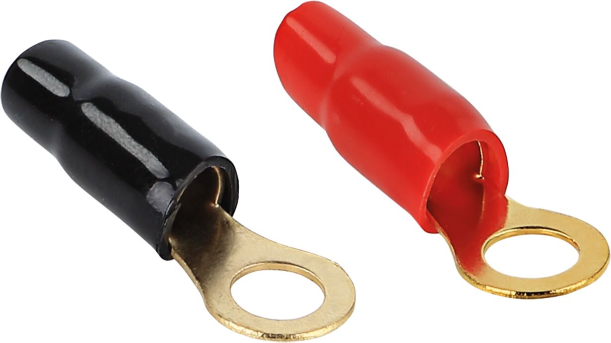 Ring kabelschoen 6 mm² D=14,0 mm Inhoud 4 Stuks : 2 rood 2 zwart Uitvoering: goudGeschikt voor:6 mm²